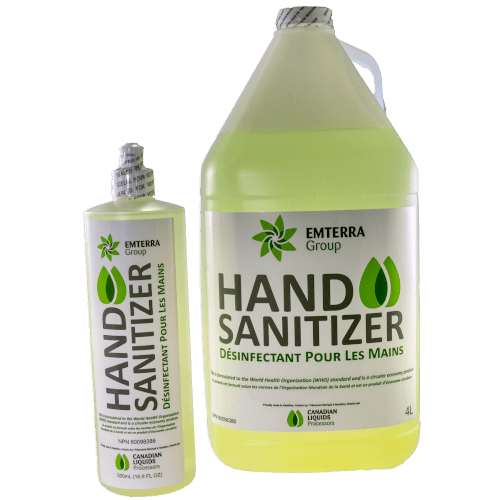 Emterra Hand Sanitizers help kill germs and stop the spread of harmful bacteria. Learn more about how this circular economy product can help your organization meet your green procurement requirements.